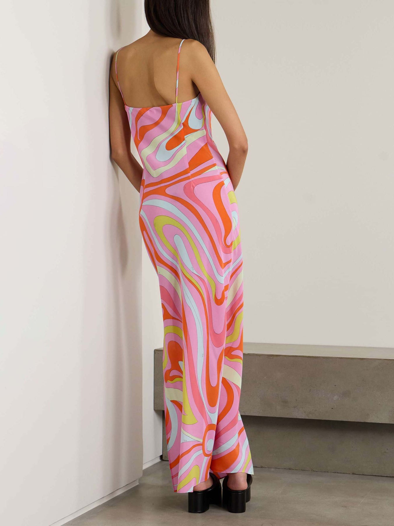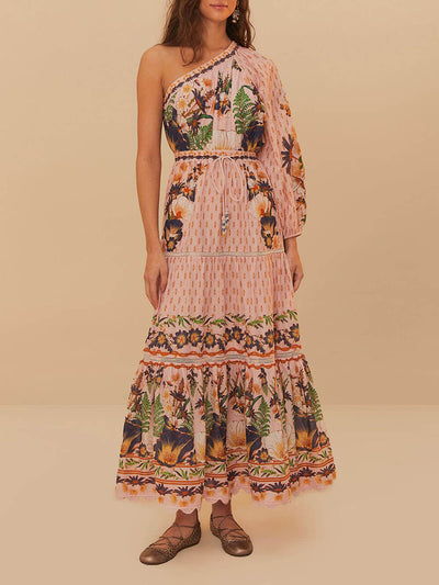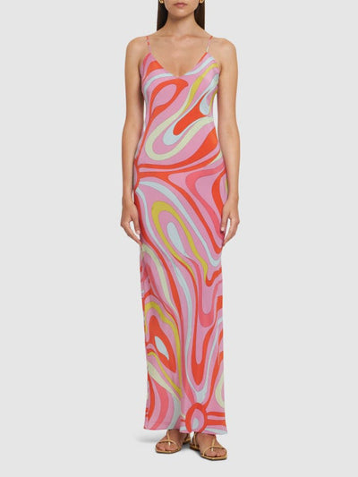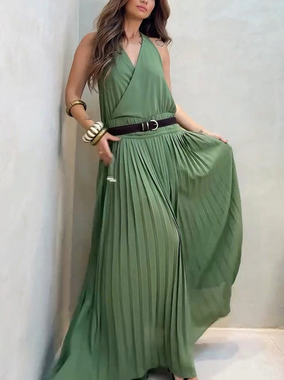 Elegant Unique Tie-Dye Print Front Pleated Back Slit Cutout Maxi Dress