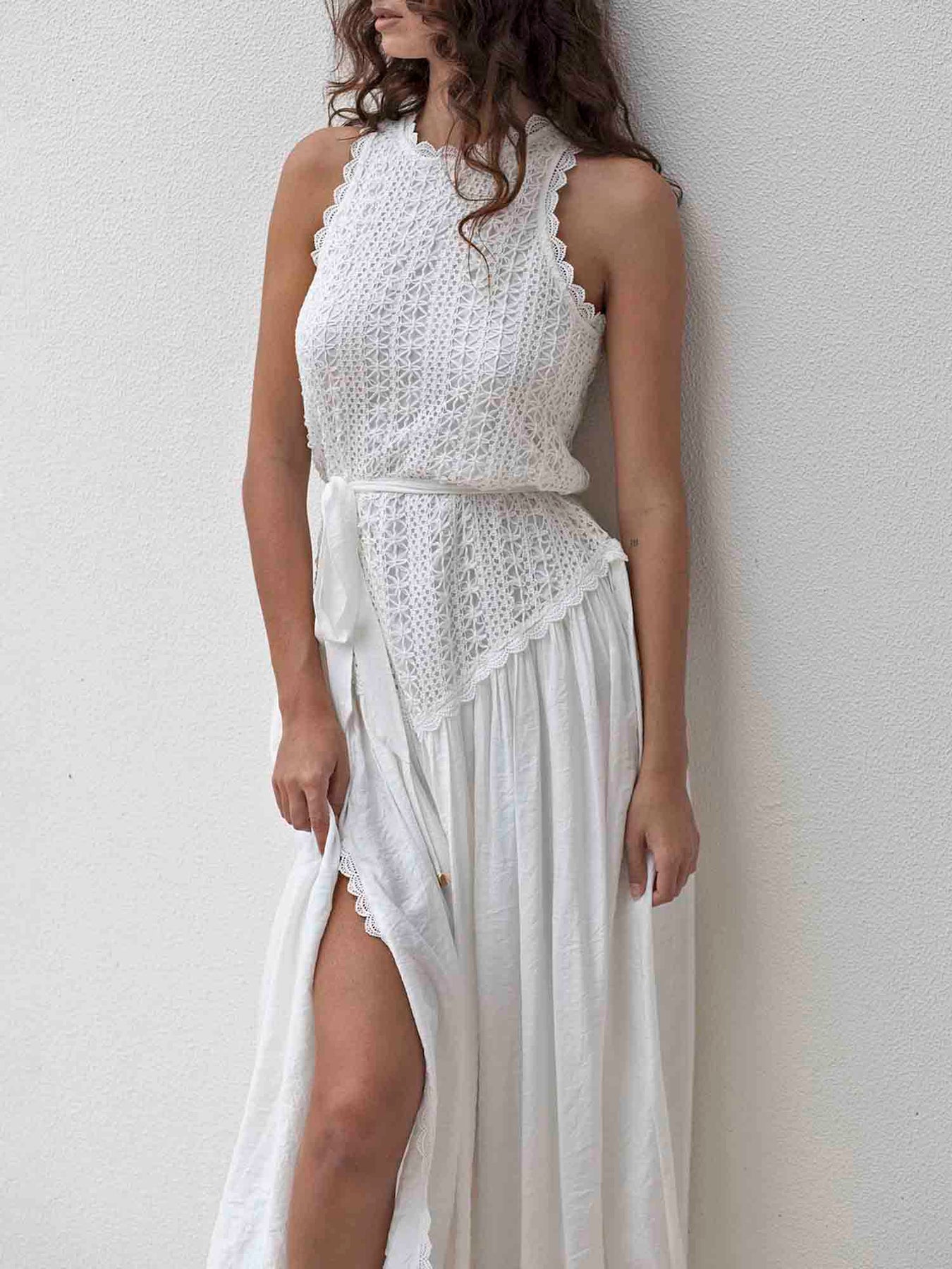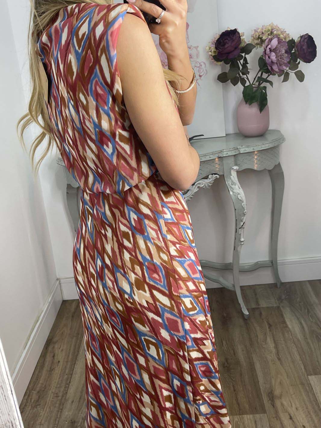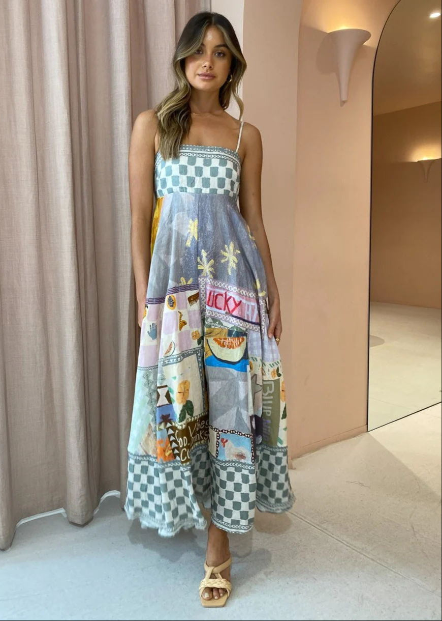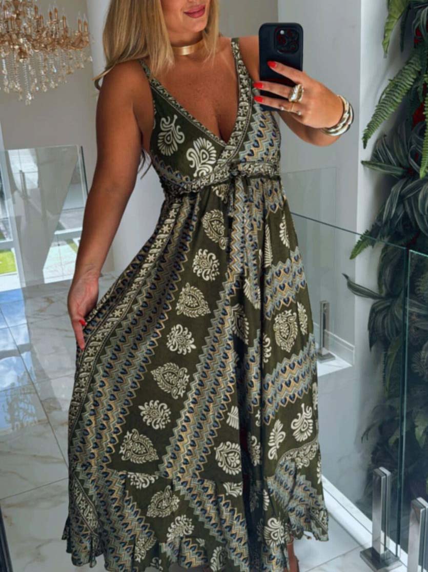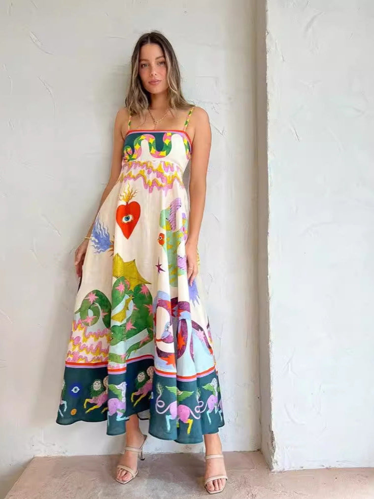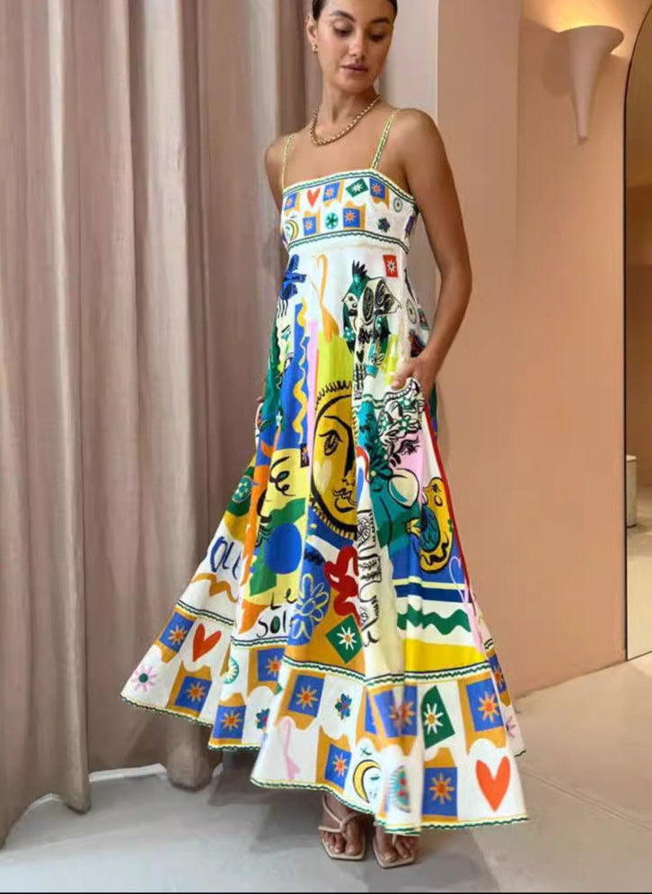 Made from premium fabric, this dress is soft and breathable for all-day wear. The sleeveless dress features a unique print that adds a touch of personality, while the fitted waist ensures a comfortable fit.