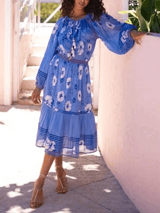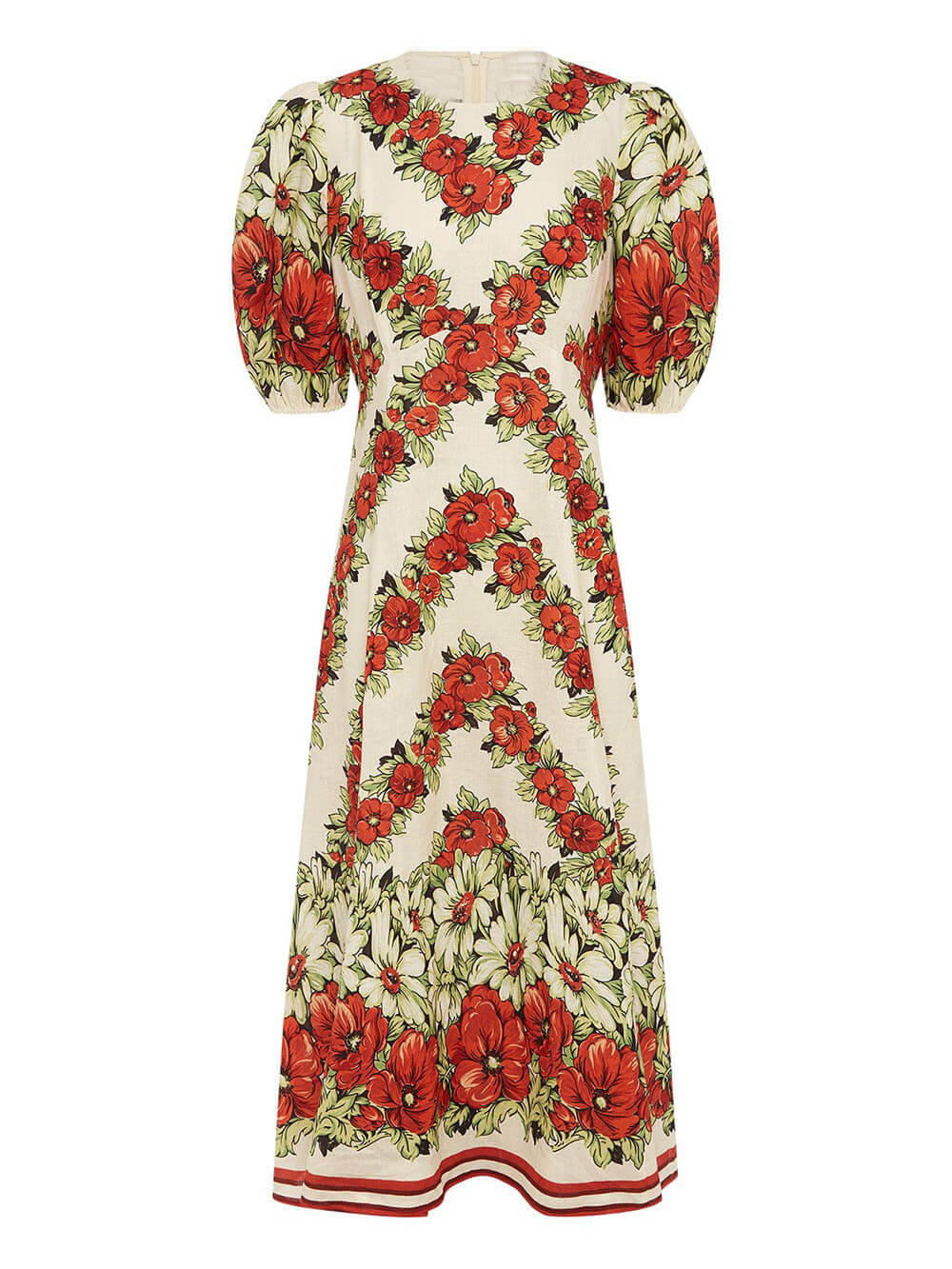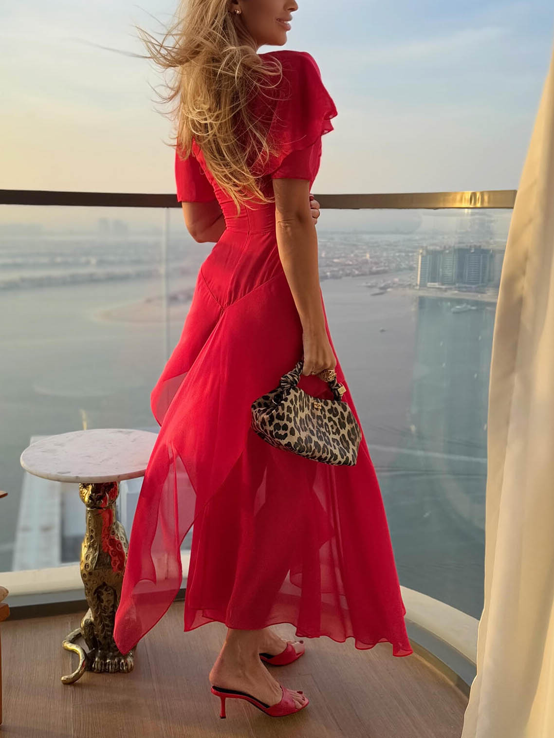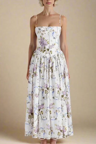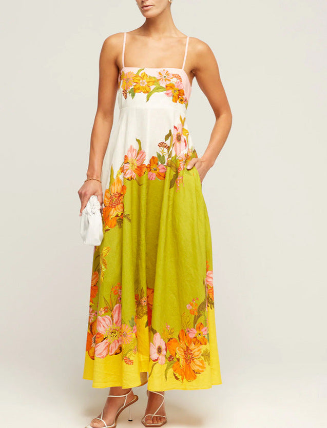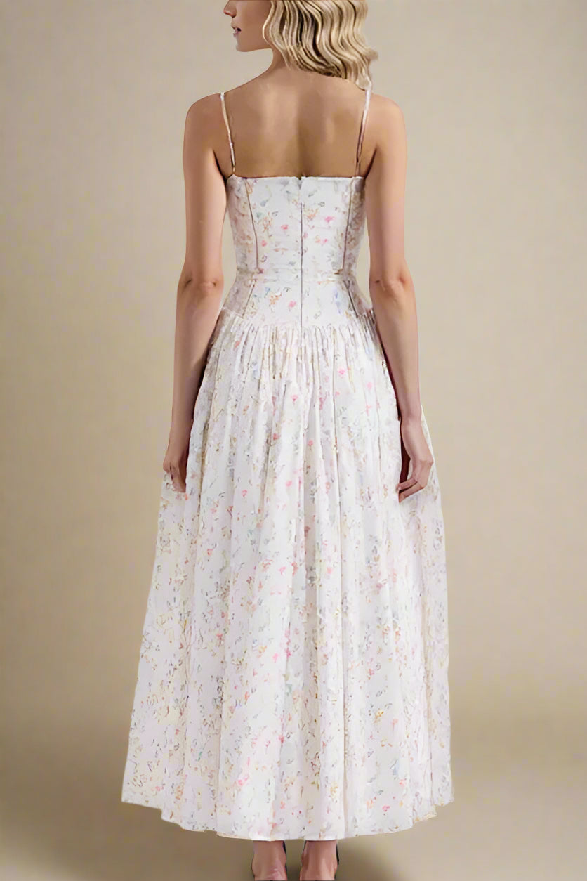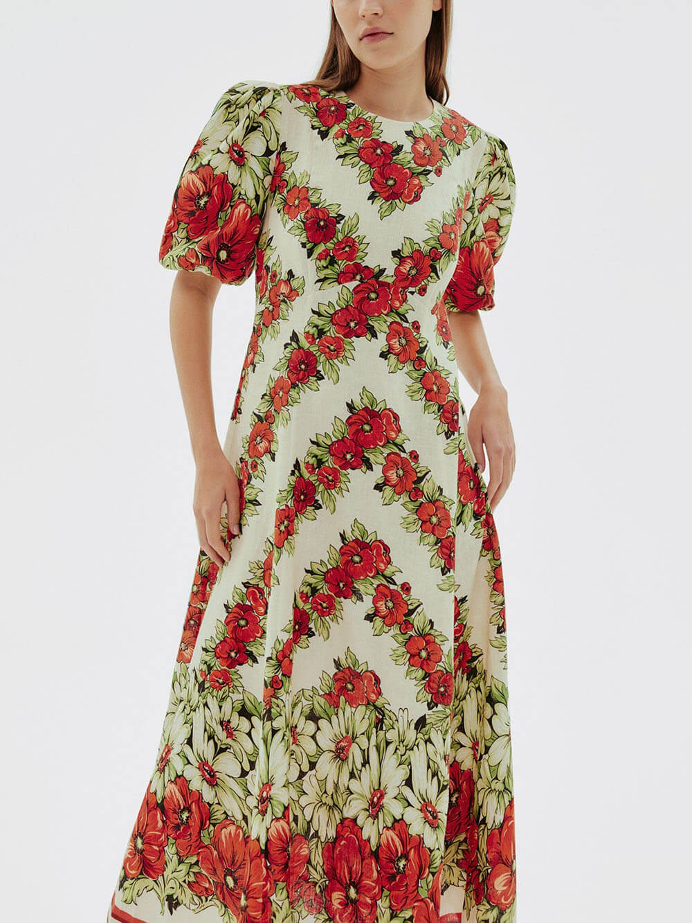 Stay stylish and comfortable in our Vintage Unique Oil Painting Print Ruffle Pleated Slit Midi Dress.