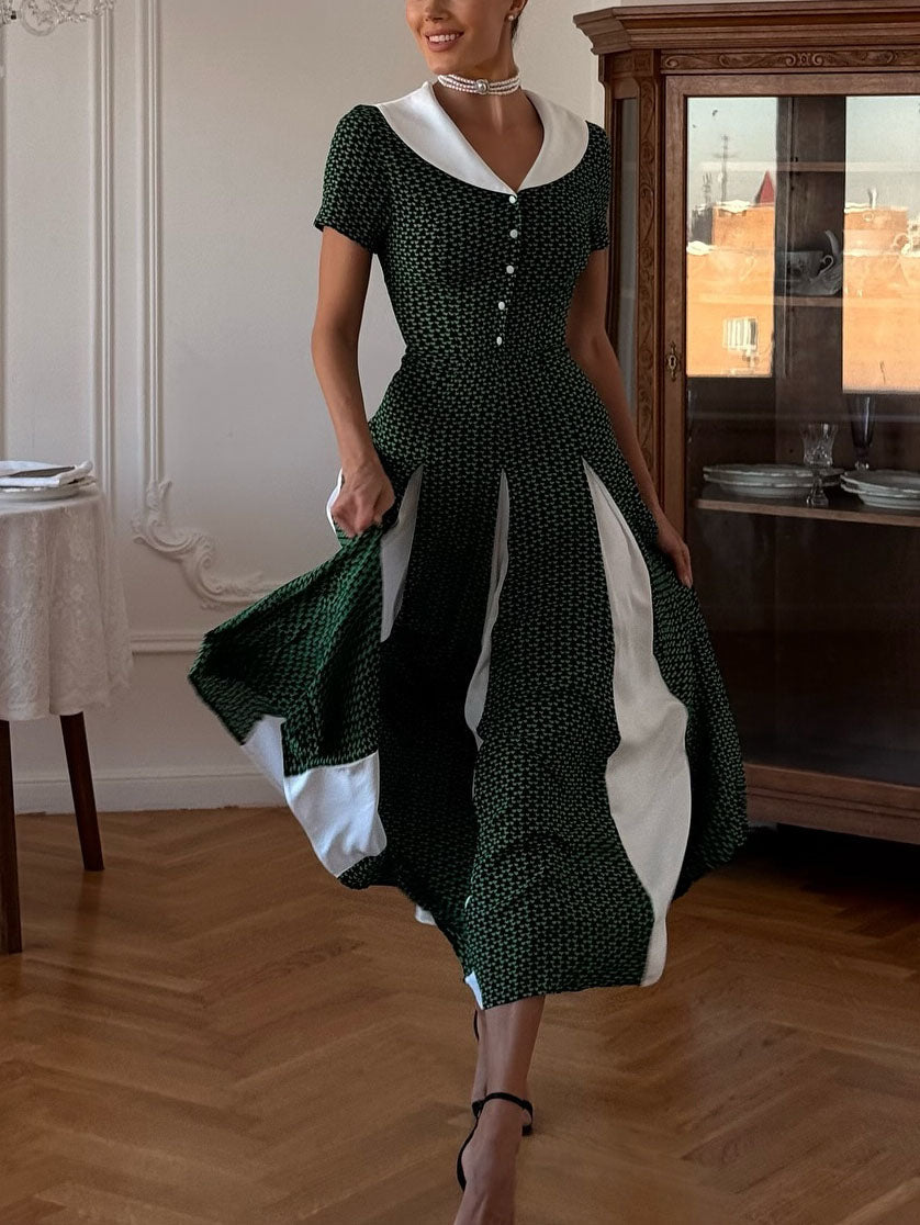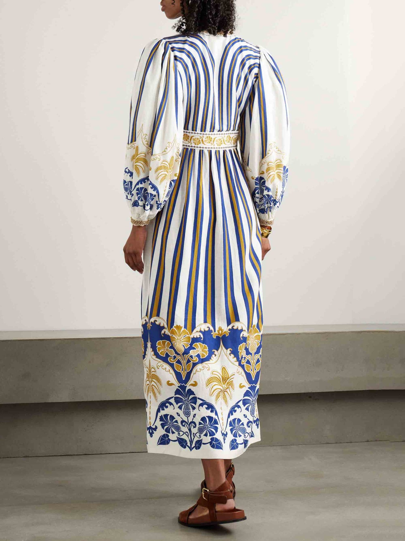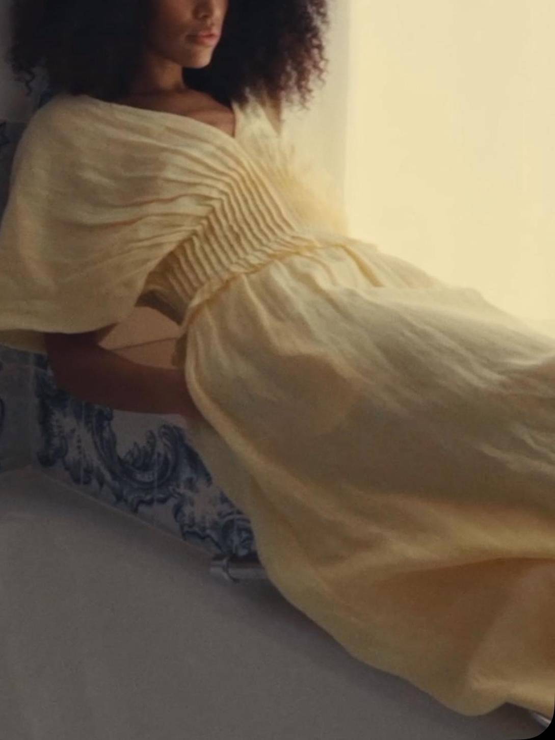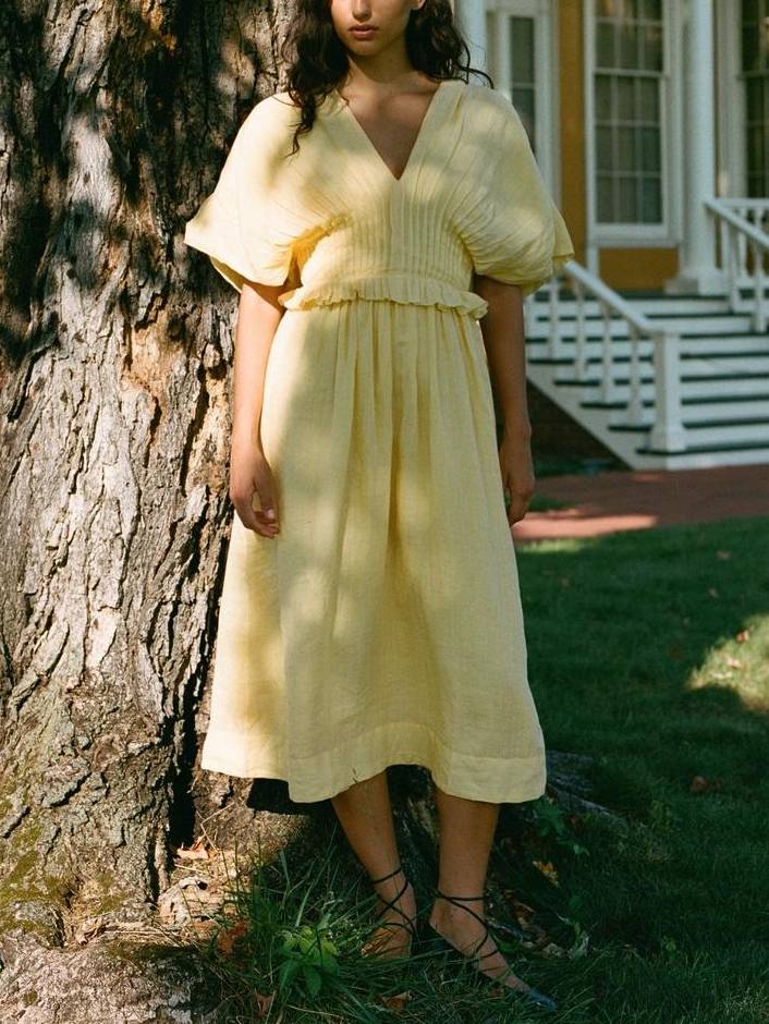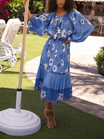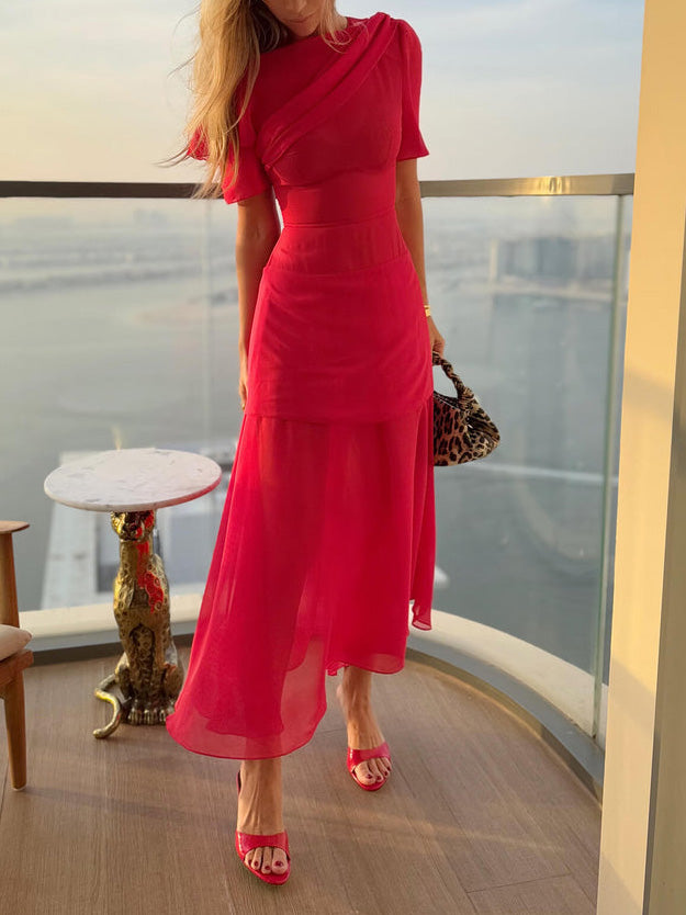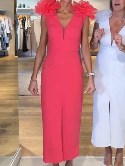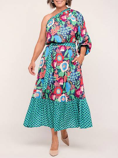 Stay stylish and comfortable in our Vintage Unique Oil Painting Print Ruffle Pleated Slit Midi Dress.