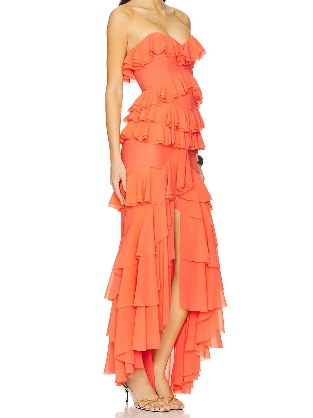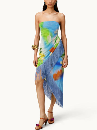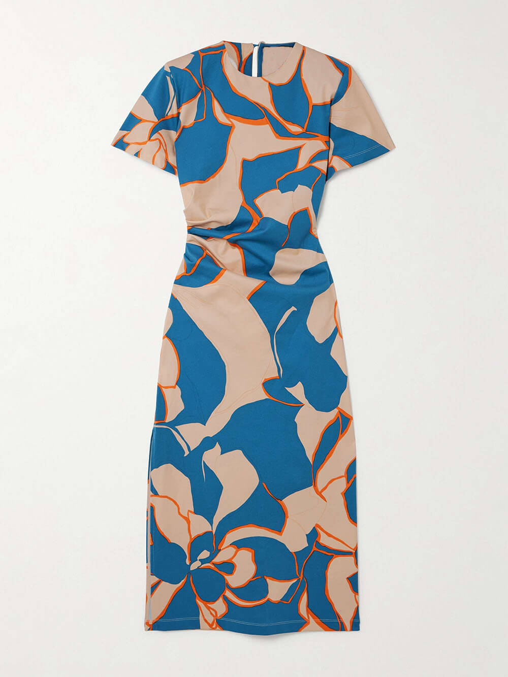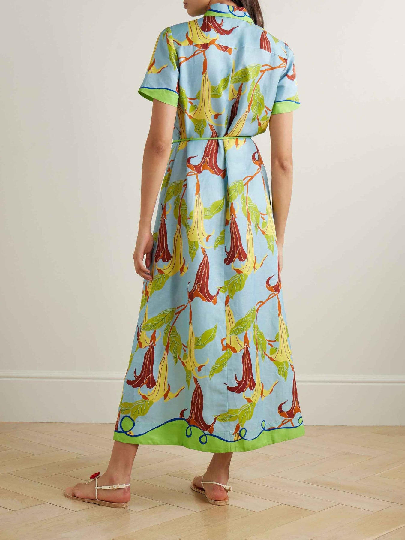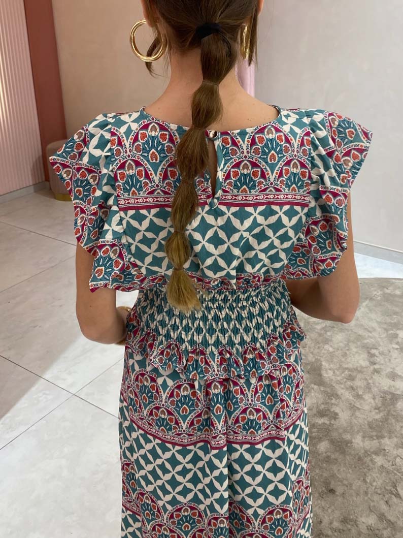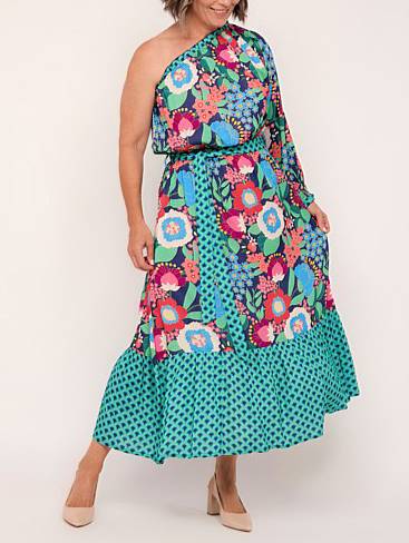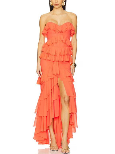 Stay stylish and comfortable in our Vintage Unique Oil Painting Print Ruffle Pleated Slit Midi Dress.