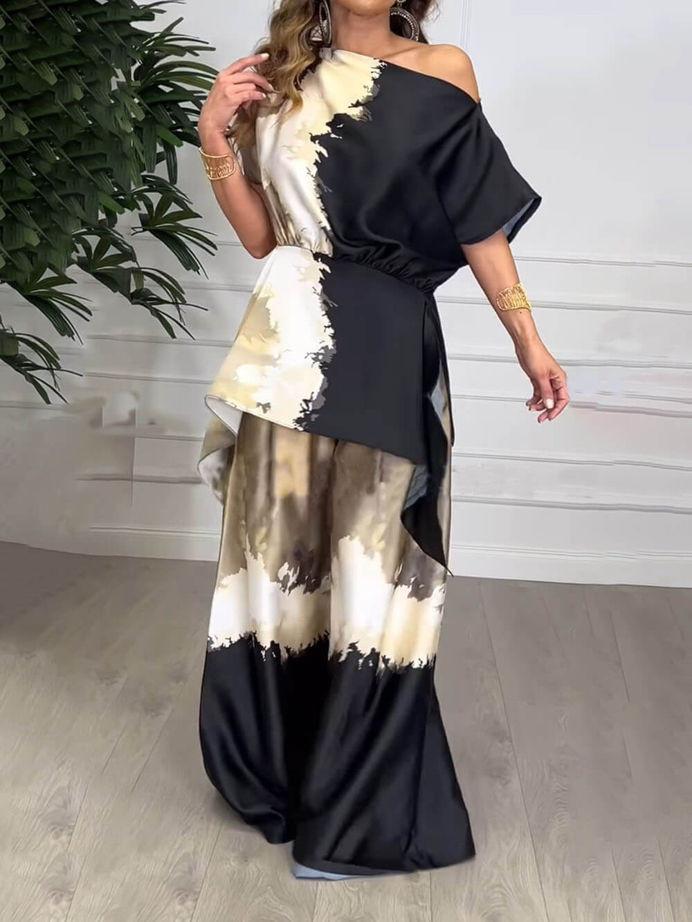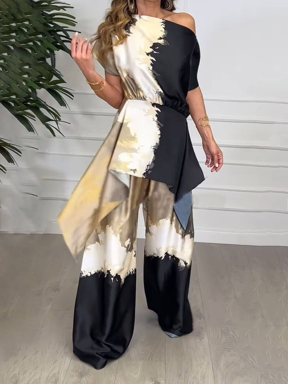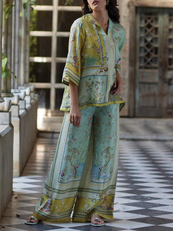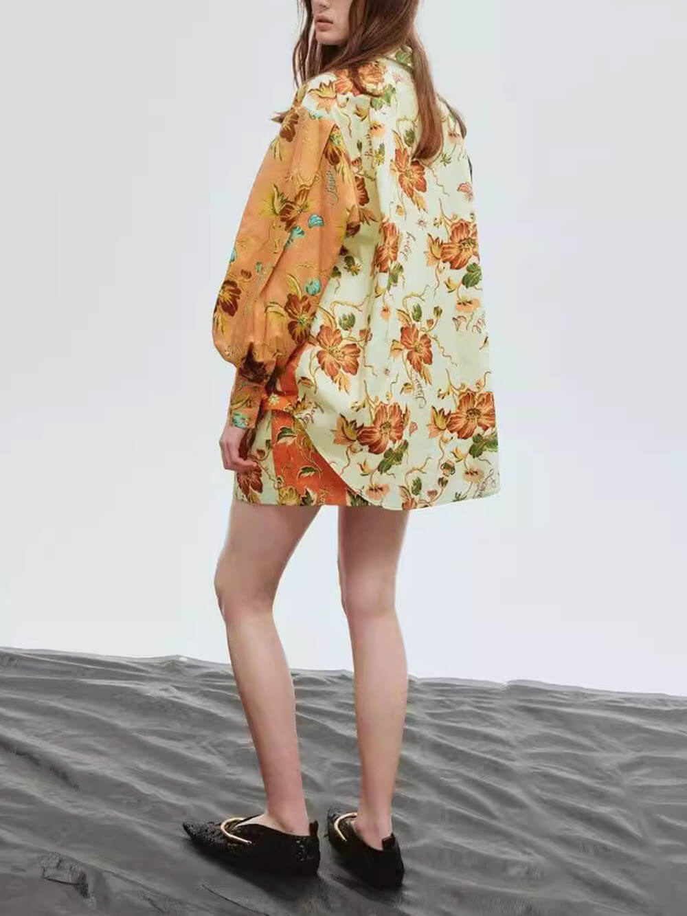 Unique Floral Print Wide Sleeve Shirt and Elastic Waist Pocketed Shorts Set